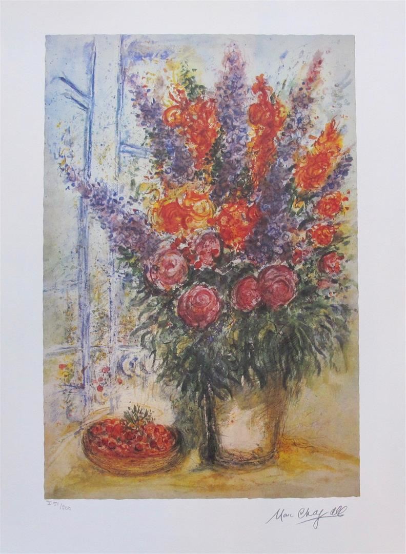 Bowl of Cherries by Chagall, Marc. Limited Facsimile Signed Lithograph. Dimensions: 27 x 17. Excellent Condition.