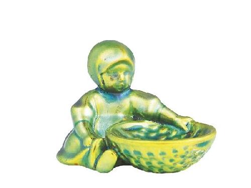 White earthenware, green eosin glaze. Marked: stamped mark. Zsolnay, Pécs, circa 1930 Length: 11 cm