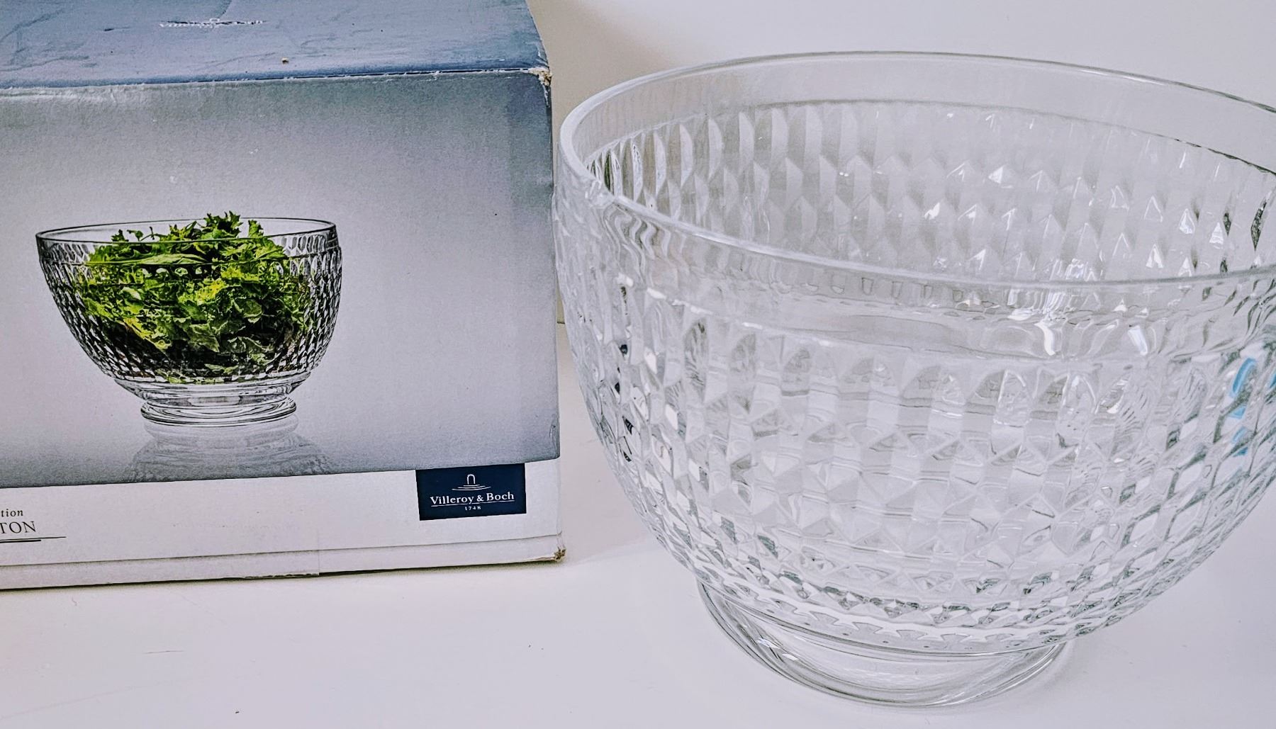 Villeroy & Bosh, Boston Collection, Crystal Glass Schale Bowl, Dishwasher Safe, Shelf Pull, New Condition