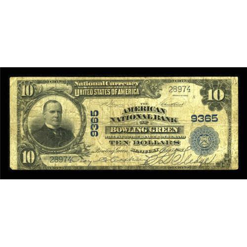 <B>Bowling Green, KY</B></I> - $10 1902 Plain Back Fr. 626 <B>The American NB</B></I> Ch. # 9365<BR> Bold, ornate signatures are noted on this evenly circulated piece. <B>Fine.</B></I><BR><BR><b>Shipping:</b> Coins & Currency (<a target="_blank" href="http://www.heritageauctions.com/common/shipping.php">view shipping information</a>)