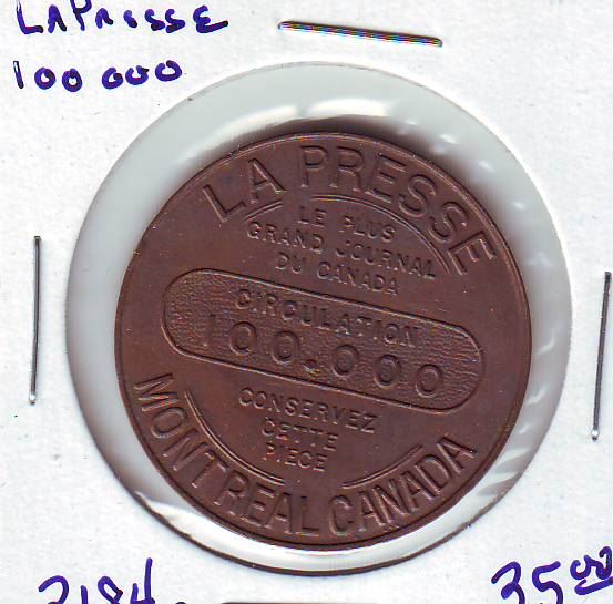 Bowman 3184a, La Presse 100000 circulation, contest token Choice UNC.