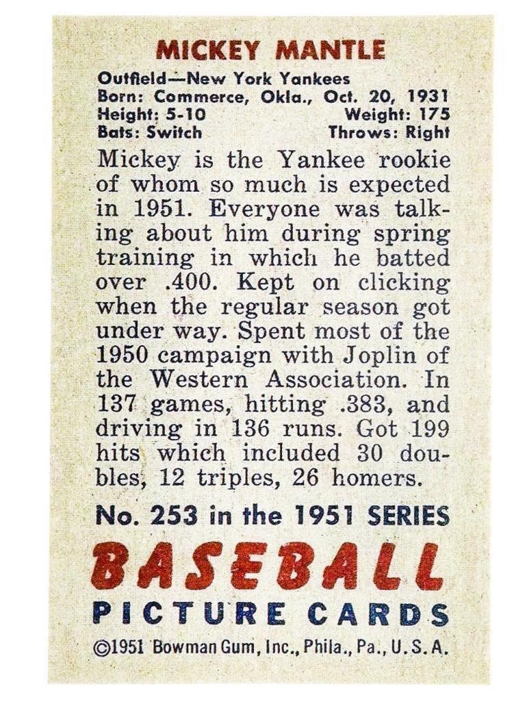 Bowman Gum Baseball Picture Cards - REPRINT Mickey Mantle-1005499