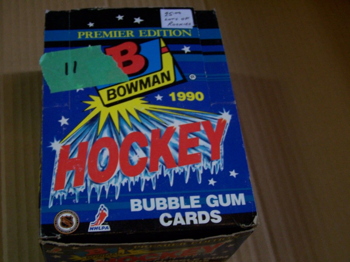 1 box of Bowman hockey cards. A hand written sticker says "lots of rookies". 1990