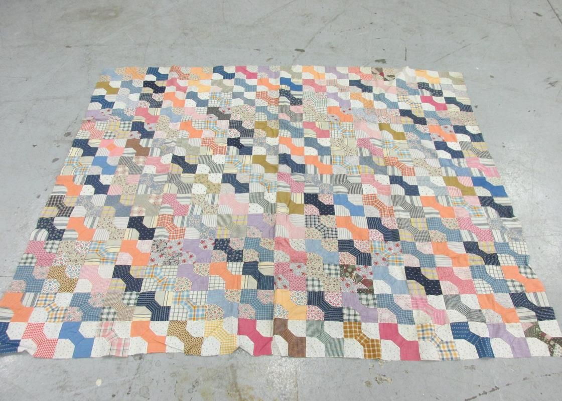 "Bowtie" pattern quilt top, 68"x79"