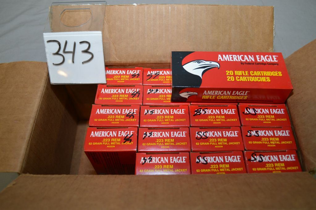 Box : 20 Boxes ( 20 rds ) American Eagle .223 Rem cal 62 Grain Full Metal Jacket Ammo