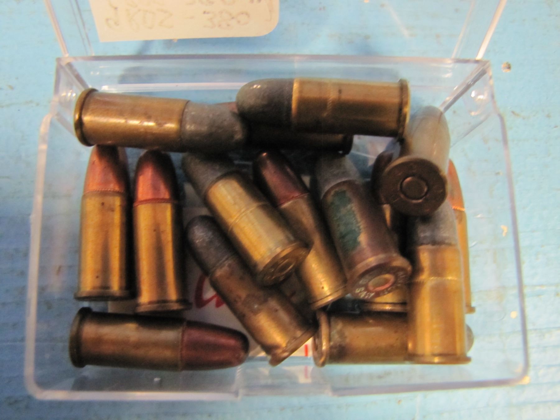 Box 9 rounds 380, 6 rounds 38 S+W factory ammo