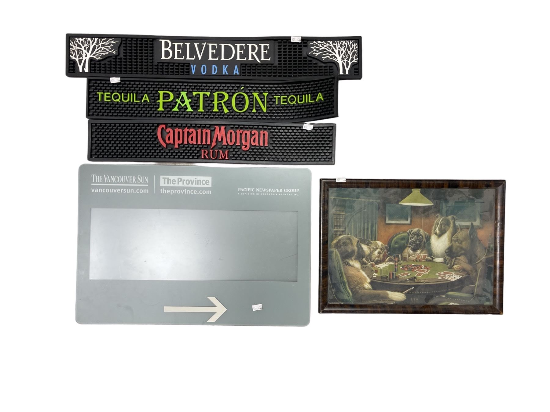 Box Full Of Assorted Collectibles, Posters, Dogs Playing Poker, Australian Outback Flag, Beer Mats, Etc..