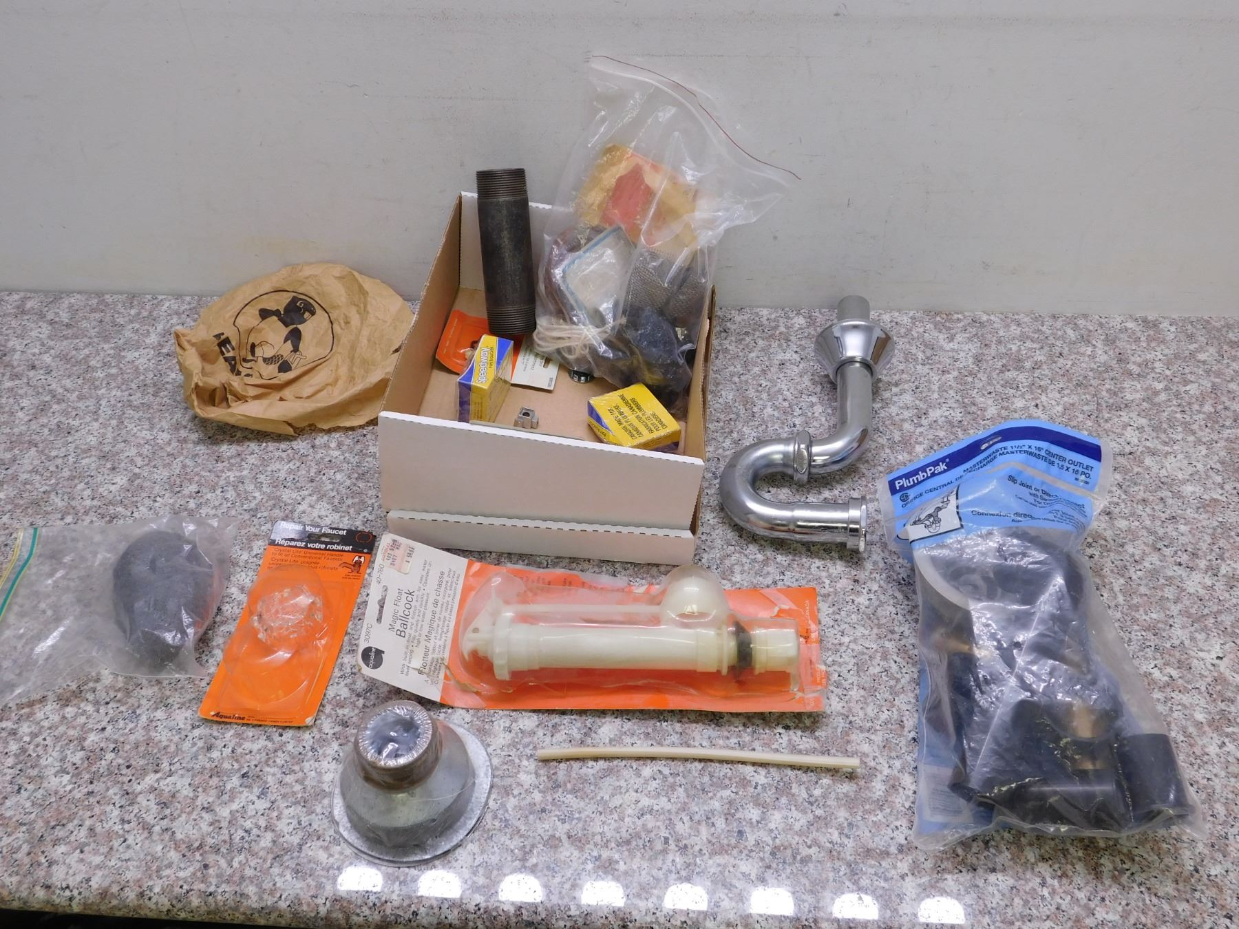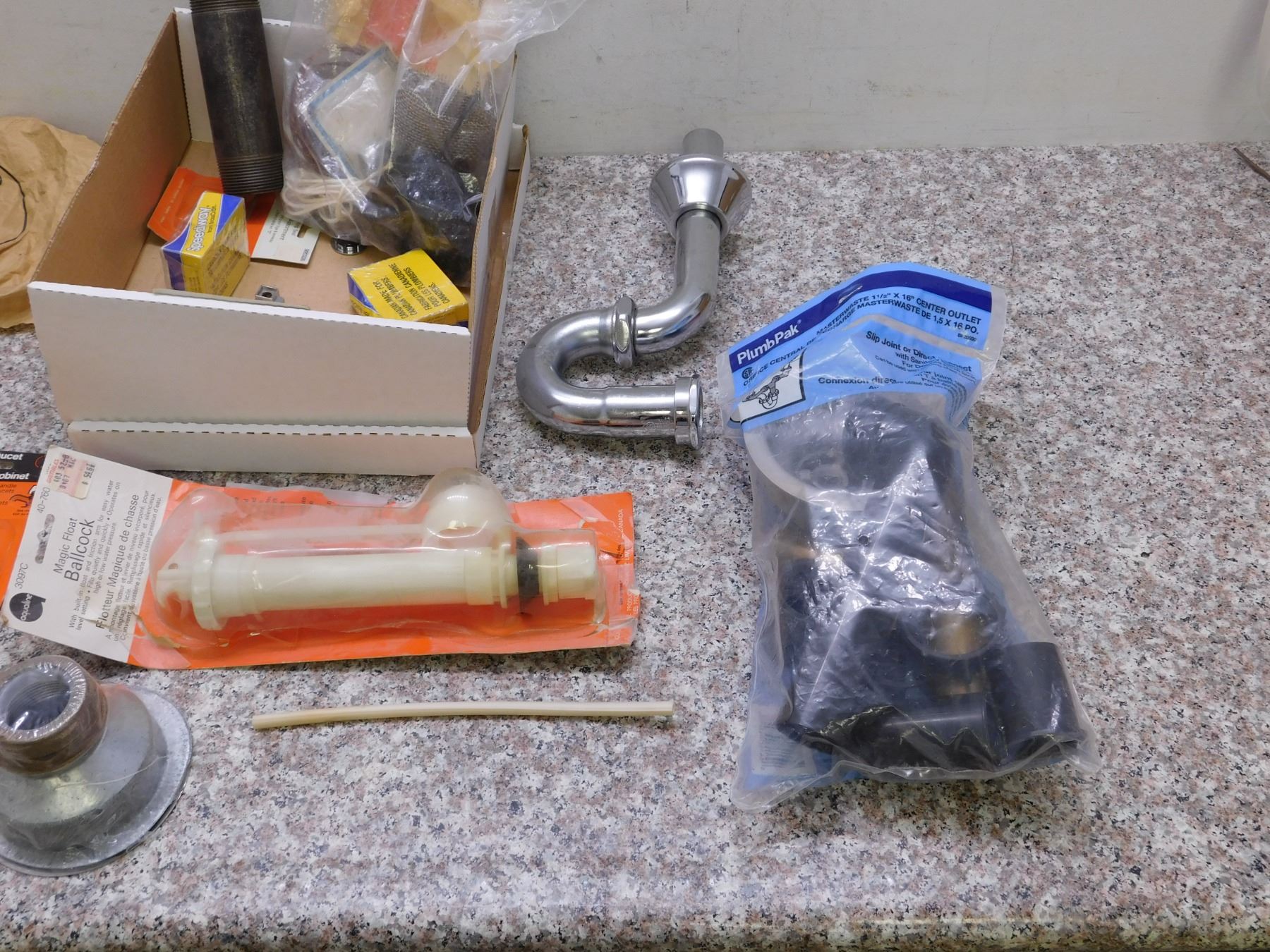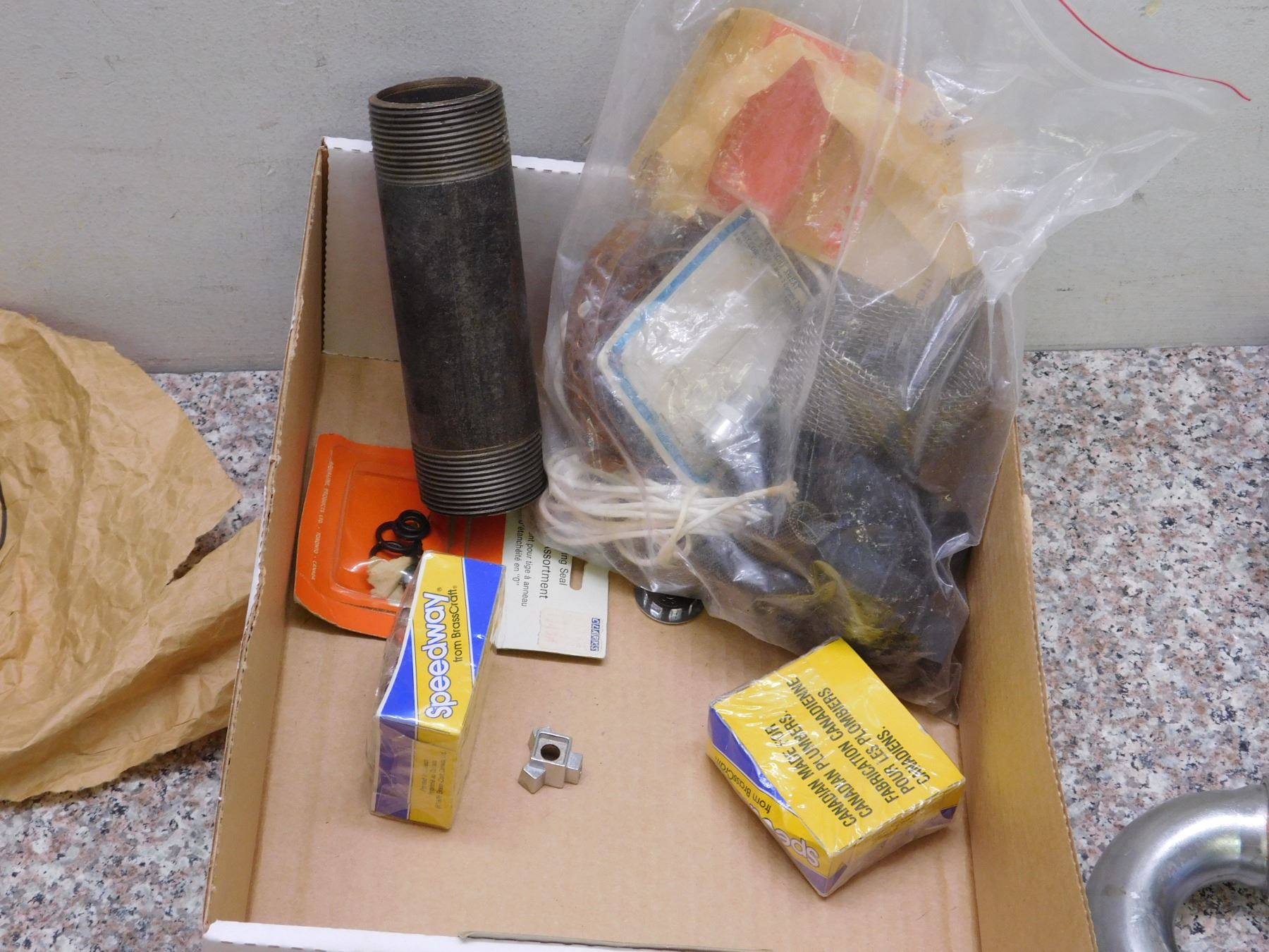Box Full of Plumbing Parts, Magic Flow, Slip Joints, Drain Taps, Pipe, Etc