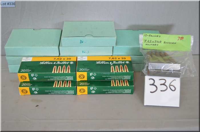 Box Lot : 10 Boxes ( 20 rnds per ) 7.62 x 54 R Russian MIlitary Surplus plus 10 rnds same - 4 Boxes ( 20 rnds per ) Ellier & Bellot 7.62 x 39 ammo