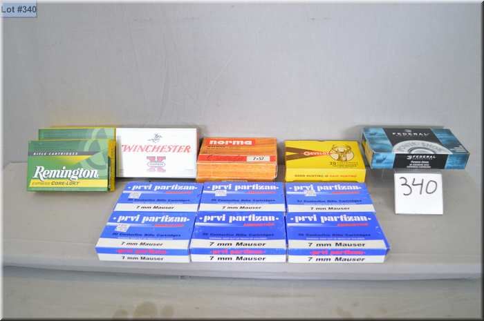 Box Lot : 14 Boxes ( 20 rnds per ) .7 MM Mauser Ammo includ : 6 boxes Prvi 173 & 139 Gr. - 2 Boxes Norma 150 Gr - 2 Boxes Gevelot 154 & 174 Gr - 2 Boxes Rem 140 Gr - 1 Box Win 145 Gr - 1 Box Federal 140 Gr