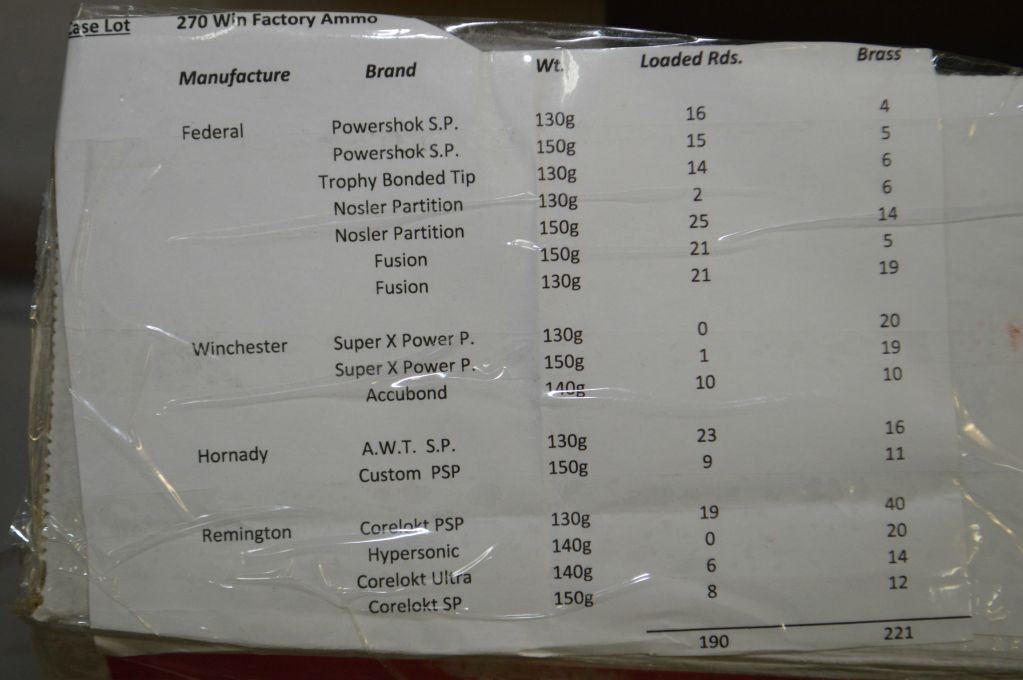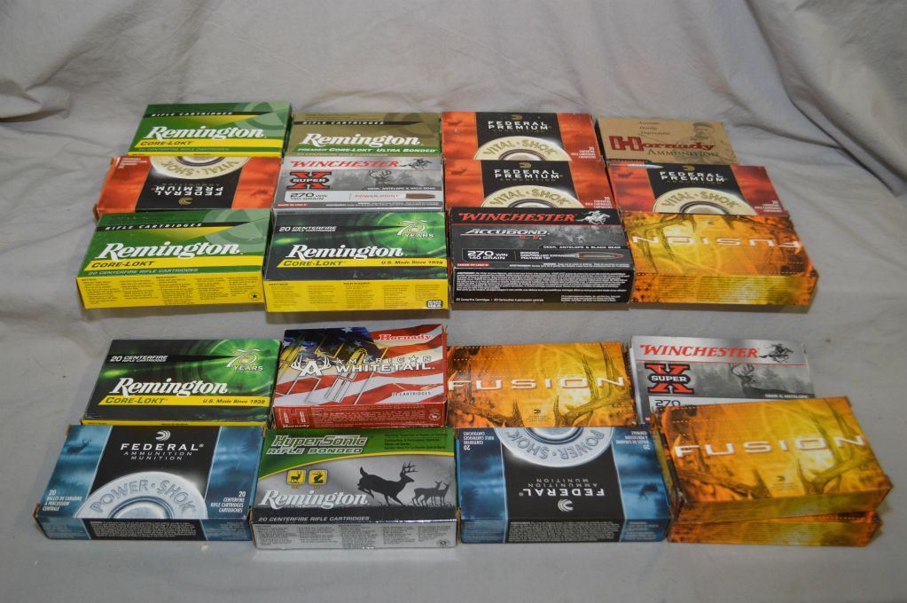 Box Lot : .270 Win Cal Factory Ammo - Approx 190 Rnds Loaded - 220 Rnds Brass [ Federal - Winchester - Hornady - Remington ] approx. as per attached list
