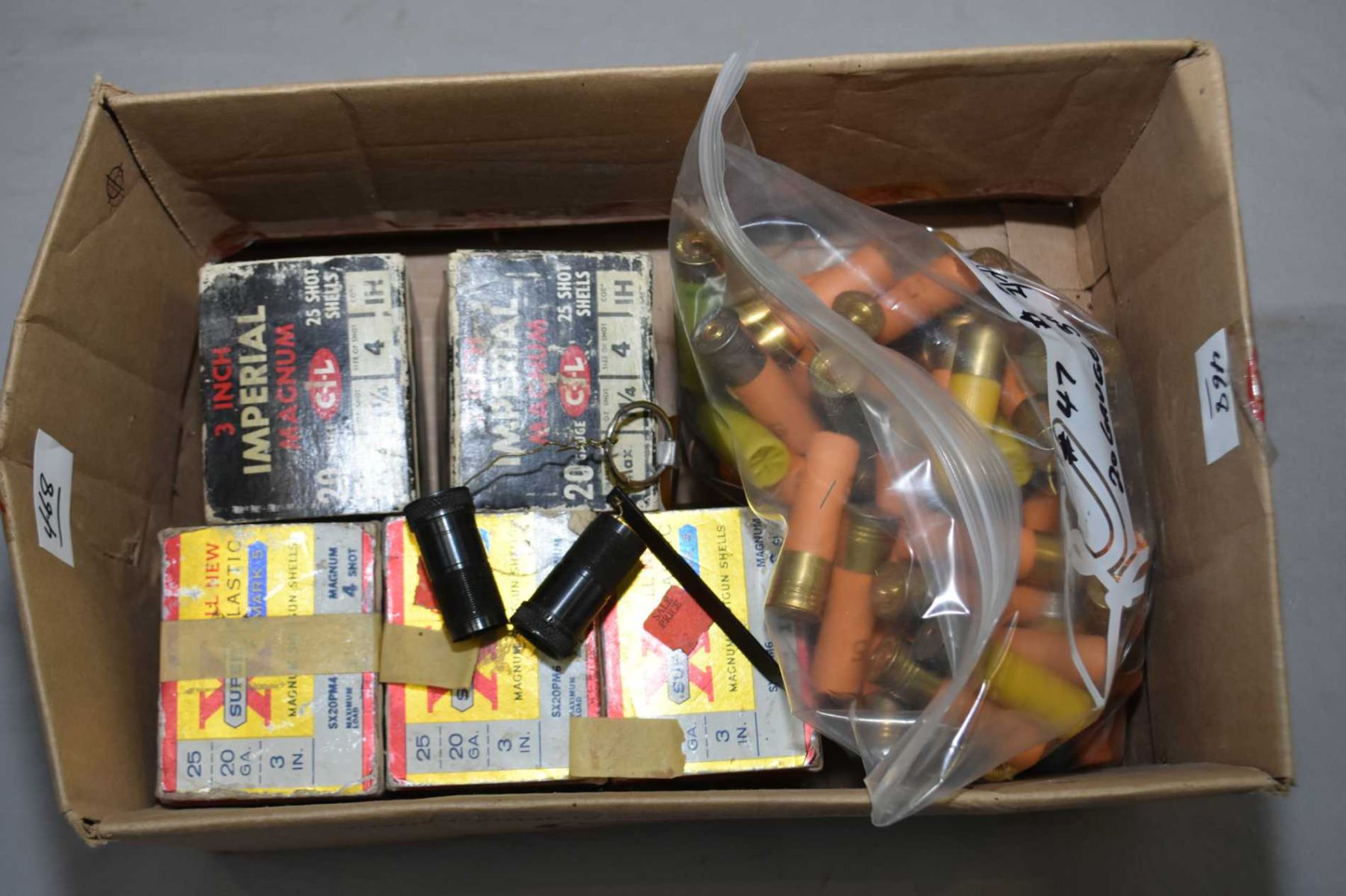 Box Lot : 5 Boxes .20 Ga 3" Shotshells - Plus Bag : Approx. 47 .20 Ga 3" Shot Shells - 46 .20 Ga 2 3/4" Shotshells