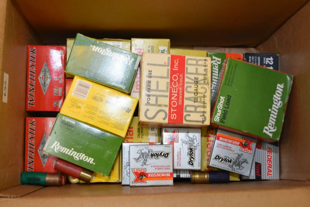 Box Lot : Approx. 14 Boxes ( Most full ) .12 Ga Shotgun Shells - Various 5 Rnd & 3 Rnd Boxes includ some shell crackers