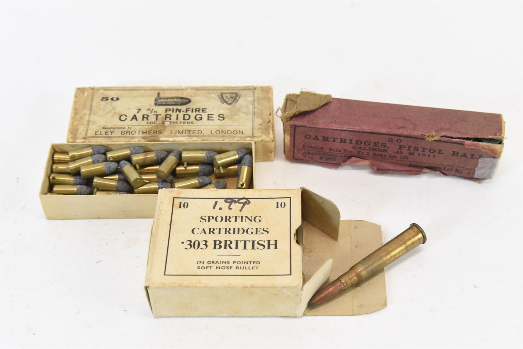 30 rounds of 7mm Pin-Fire cartridges for revolvers manufactured by Eley Brothers ammunition