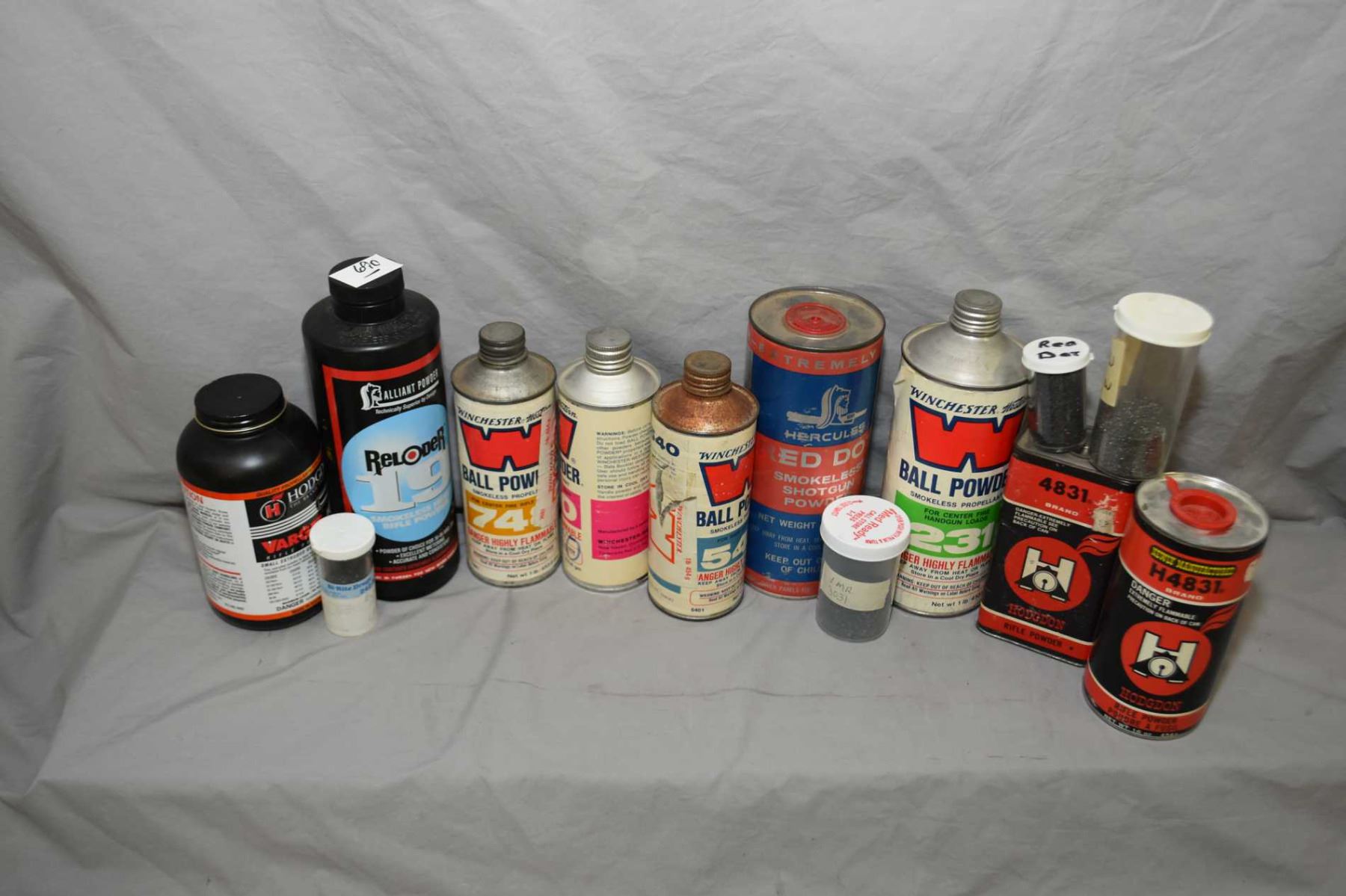 Box Lot : Asstd Gun Powder : 1 Lb Red Dot Shotgun - 1 Lb Win 748 - Part 1 Lb Win 540 - 1 Lb Win 231 - Part 1 Lb Hodgon Varget - 1 Lb Hodgon 4831 - Approx. 1 Lb Reloader 19 - 1 Lb Win 760 - Some Containers Powder marked on bottles
