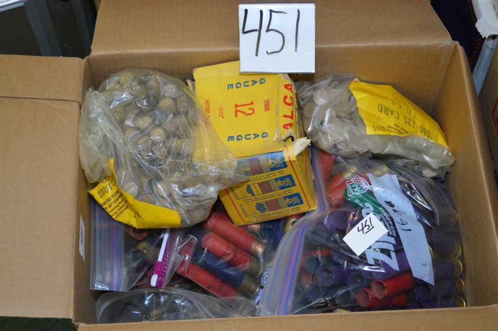 Box Lot : Bags of brass, shot shell hulls & various .12 & .16 Ga wads, etc