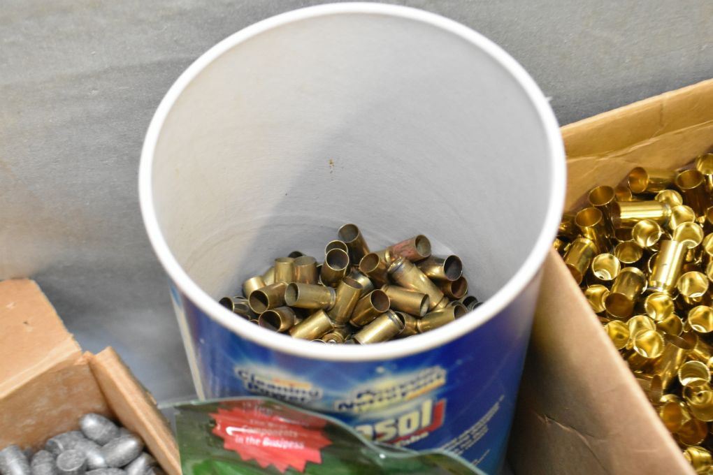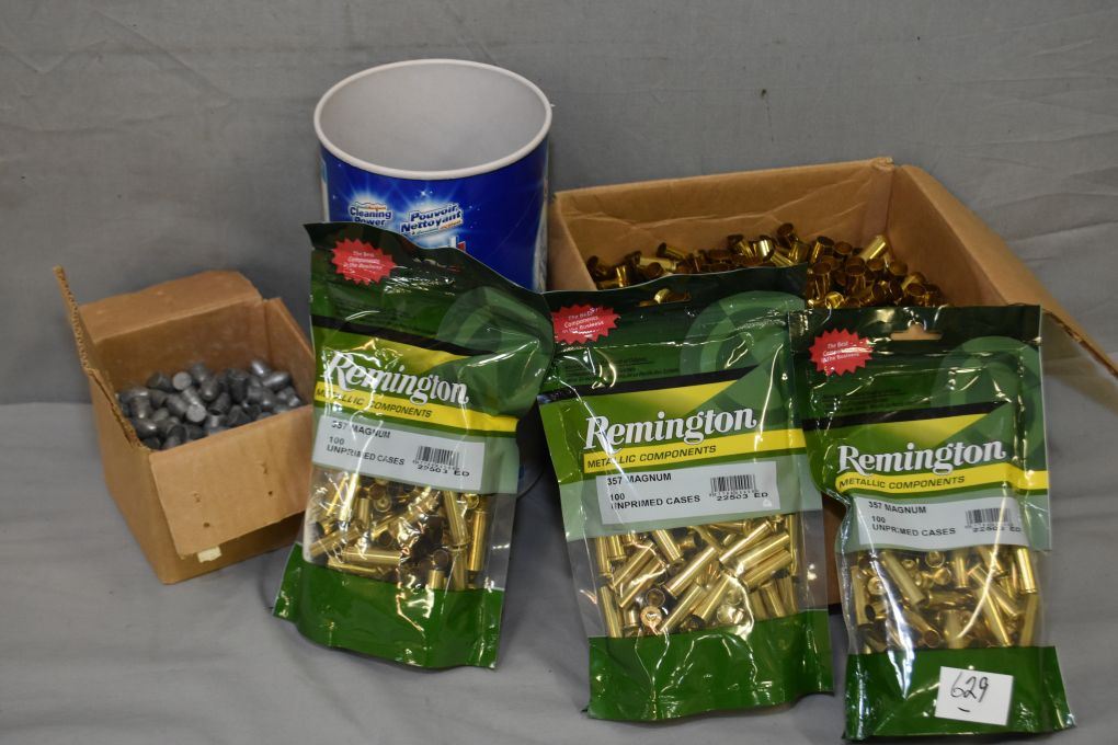 Box Lot : Box .45 Cal Lead - One Box .45 Auto Cal New Brass - Three Bags ( 100 per ) .357 Mag New Brass - Asstd Used .9 MM Luger Cal Brass