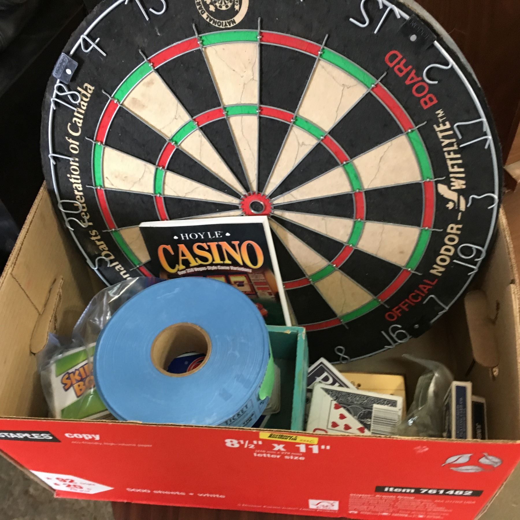 Box Lot: Dart Board, Playing Cards, 50/50 Tickets, etc !