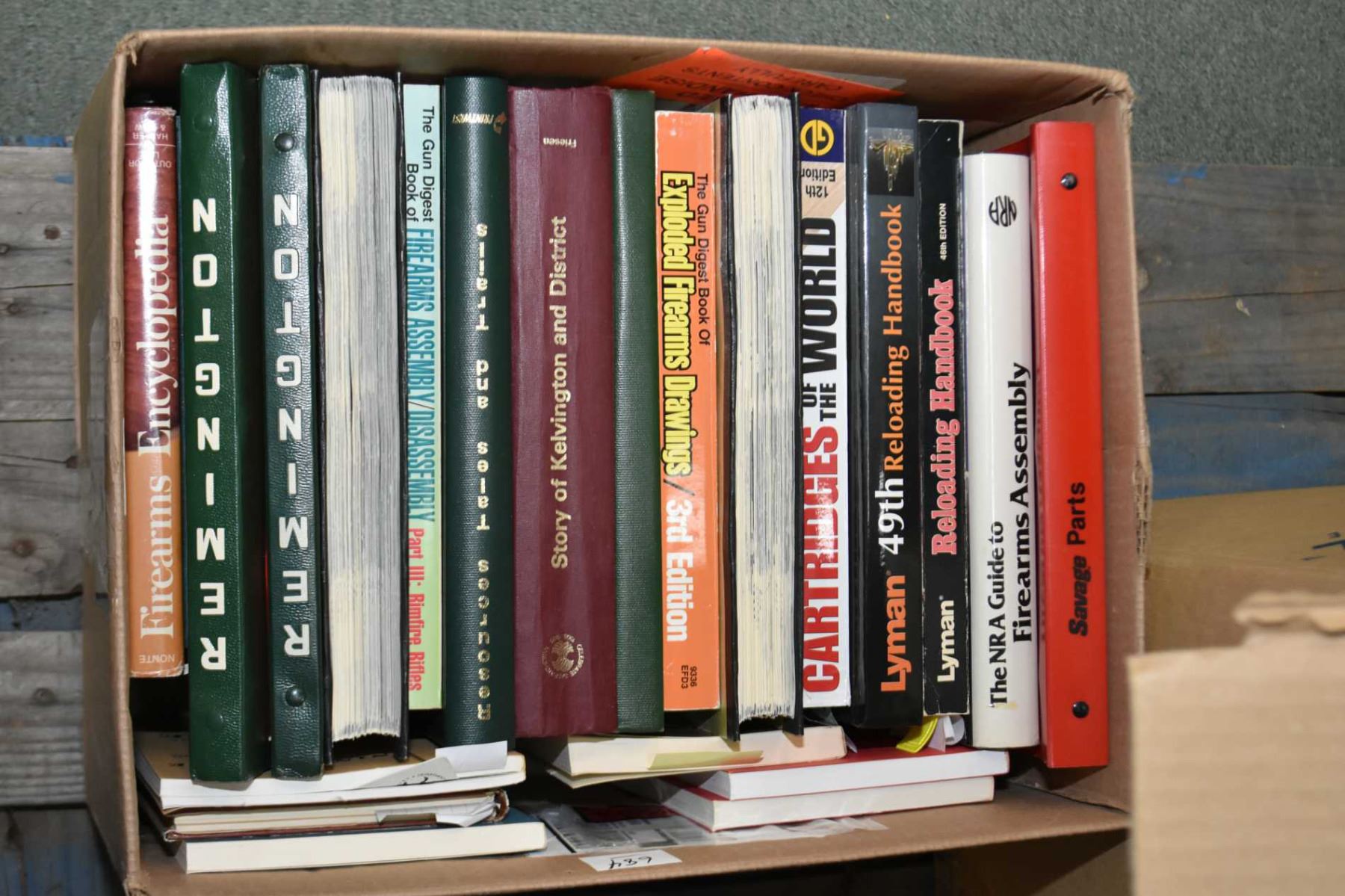 Box Lot : Hard & Soft Cover Books: NRA Guide to Firearms - Four Saskatchewan History on Areas [ Porcupine Plain, Kelvington & District, etc ] - Sharps Rifles, Remington, Savage 95, Warner's American Longarms, etc. - Lyman's Reloading Manual , Great Lot !