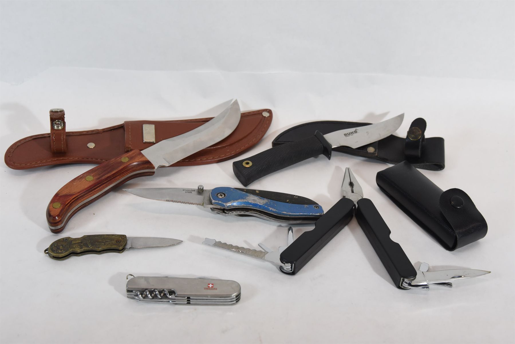 Multi-tool in leather sheath.