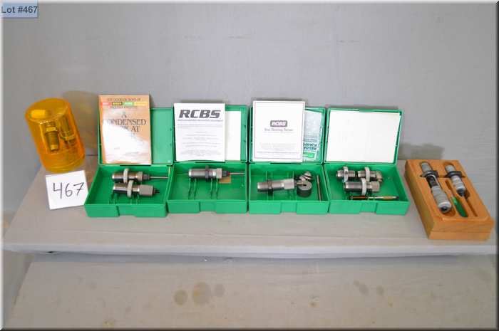 Box Lot : Lee .303 cal dies - RCBS .7 MM BR Rem form set - RCBS primer pocket swagger combo - RCBS .222 Rem Competitive Die set in wooden box - RCBS .308 Base sizer die - RCBS .7 MM BR Rem FL die set -