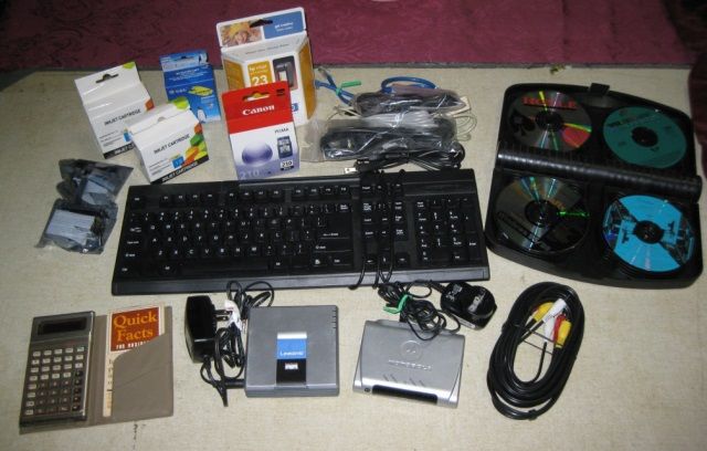 Calculator, DSL Modems, Keyboard, AT&T U Verse, Printer Cartridges, CD Case Misc. Computer CD's, Etc...