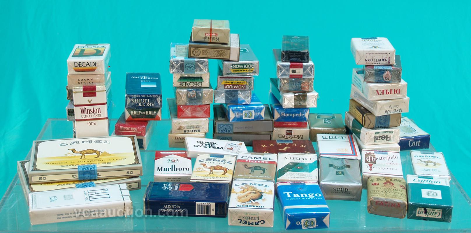 Box Lot Of 66 Packs Of Old Cigarettes (1940 & Later), Including: Camel, Marlboro, Parliament, Winston, Etc.