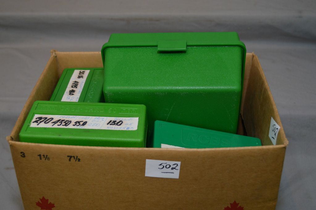 Box Lot : Over 70 .7 MM Reloads in plastic box - Over 55 rnds .243 Reloads plus brass in three containers - 25 rnds plus brass .25-06 Reloads - approx 55 rnds .30-06 reloads in plastic boxes - approx 15 plus rnds .270 reloads