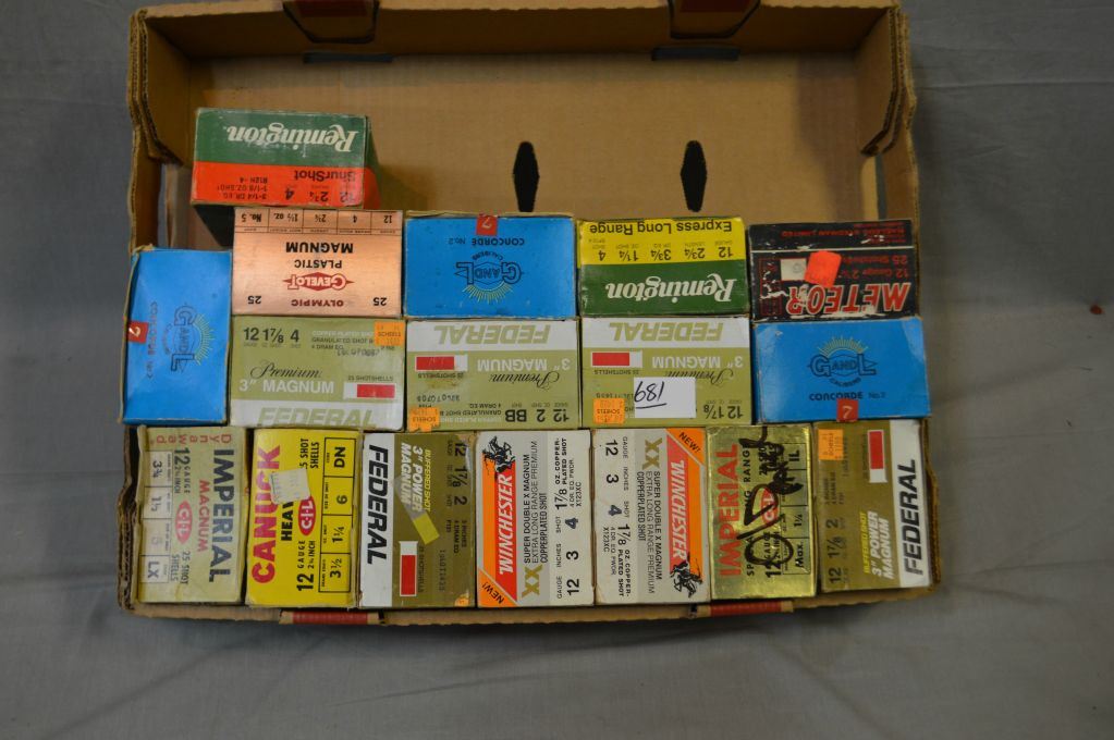 Box Lot : Thirteen Full & Three Part Boxes .12 Ga Shot Shells [ various makers & size, shot, etc. ]