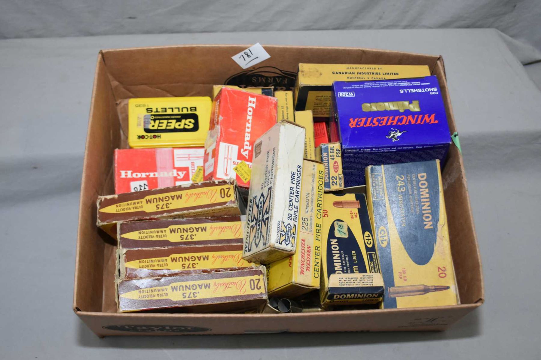 Box Lot : Various Bullets, Primers, Brass : .357 Wby Mag, etc.