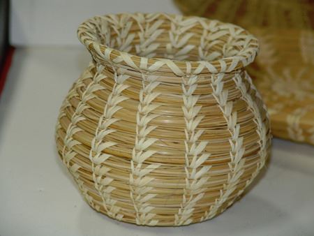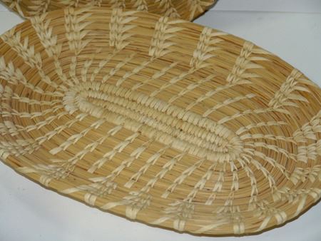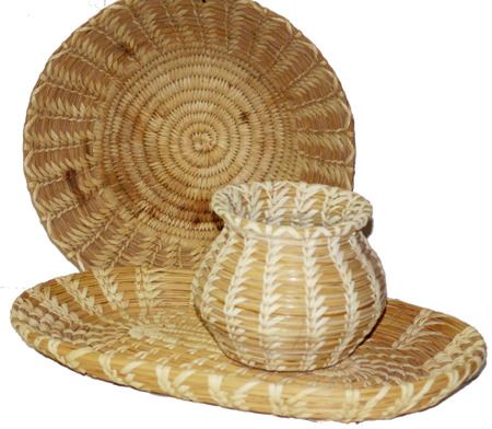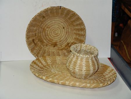 Ca. 1970s-1980s, Includes three Papago wheat stitch examples: a plate, bowl, and an olla. All in very good condition. 2" x 16" x 11"
