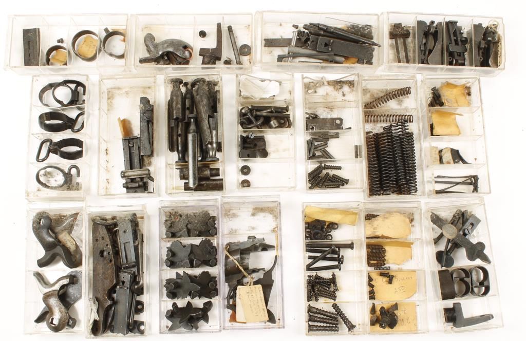 Over 12 pounds. Including sights, springs, barrel bands, hammers, screws, and much more.
