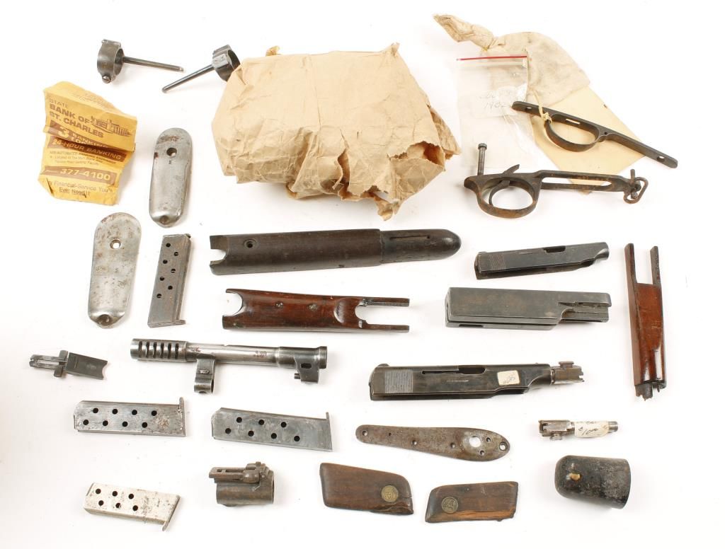 Approx 9 pounds. Including barrels, butt plates, slides, magazines, forends, and more.