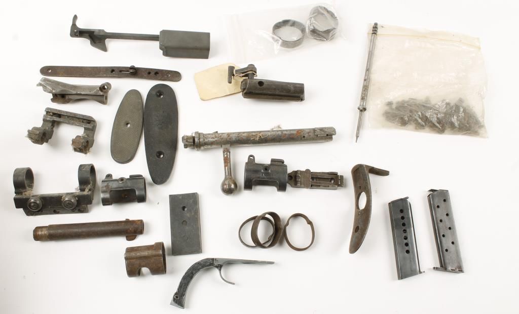 Over 10 pounds. Including hammers, butt plates, firing pins, magazines, bolts, and more.