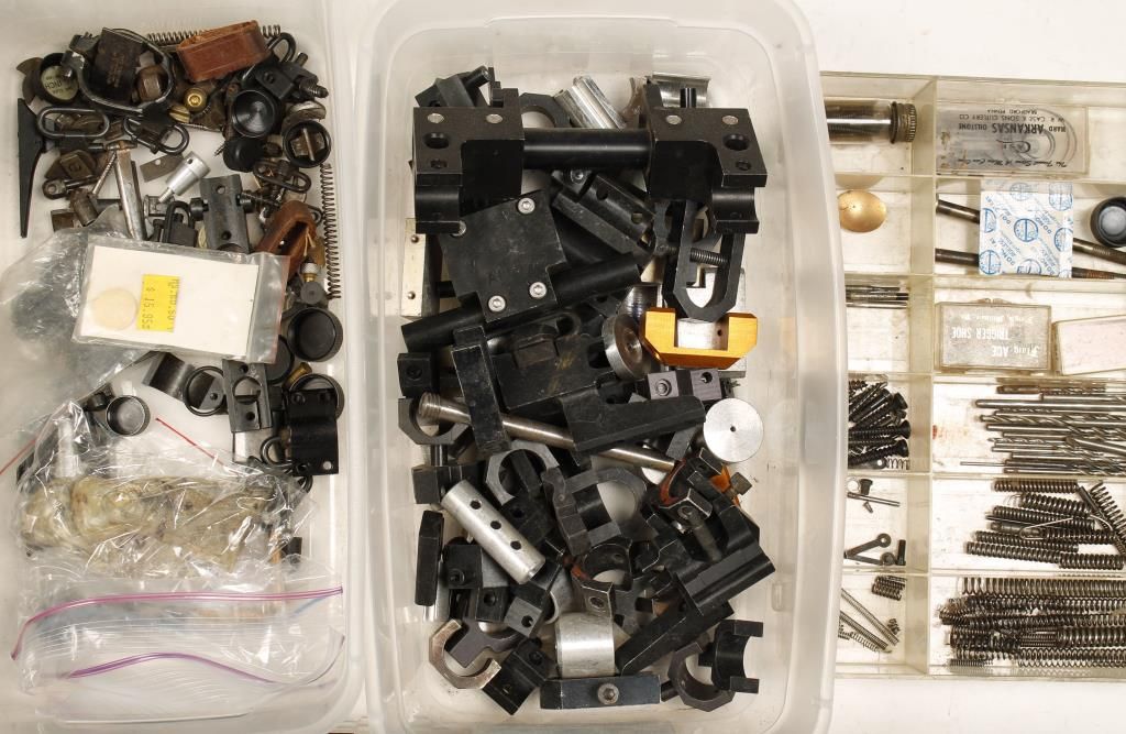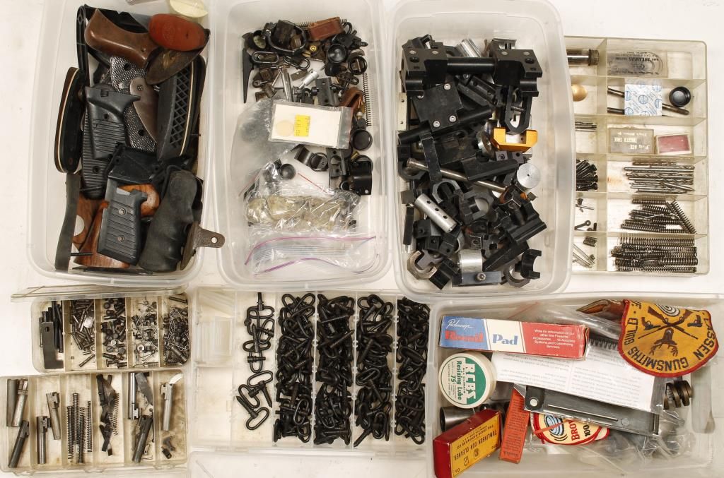 Over 15 pounds including butt plates, recoil pads, barrels, firing pins, Savage gun parts, sling swivels and much, much more.