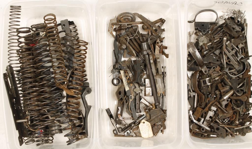 Over 15 pounds including hammers, trigger guards, firing pins, springs and much, much more.