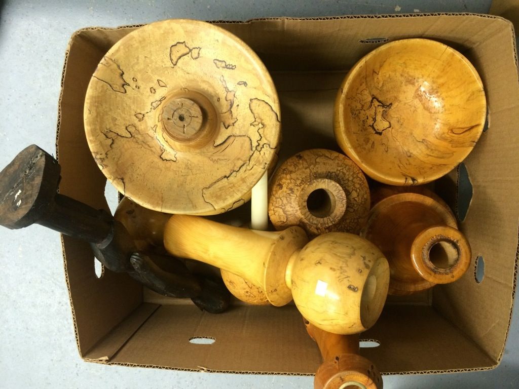 Box Lot of Hand Turned Solid Wood Lamp Bases