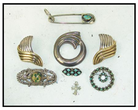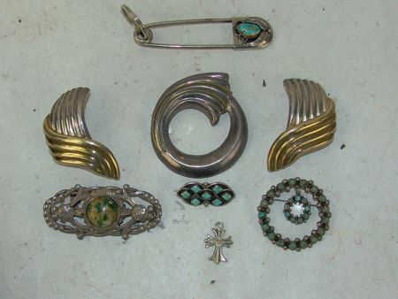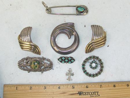 Various Ages, Many pieces (some silver) including pins, bracelet, watch tips, etc. Various sizes