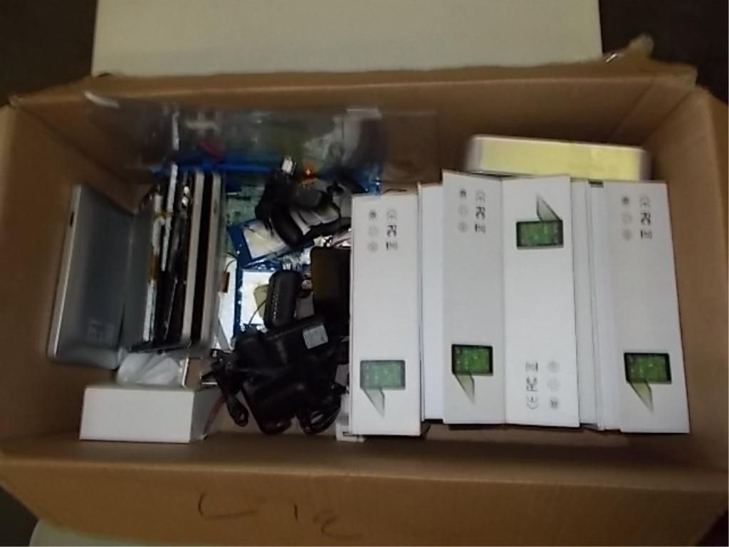 Box Lot of Misc. Electronics power cords - pouch pads- Denon docking station- possibly for I Phone