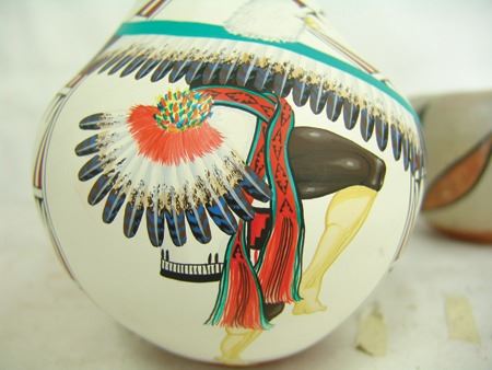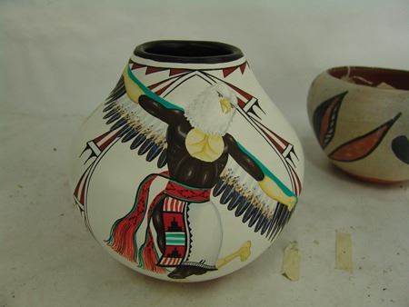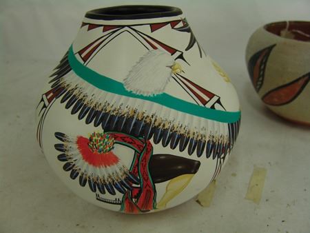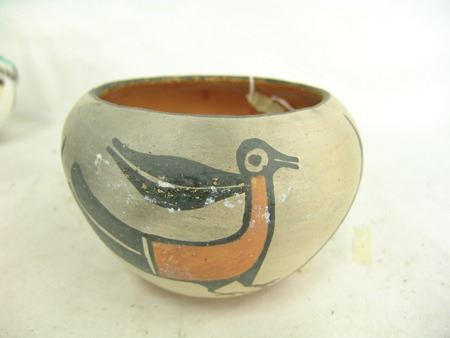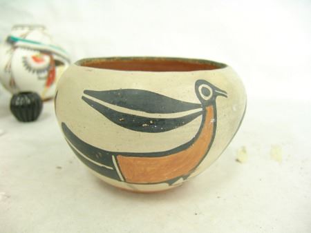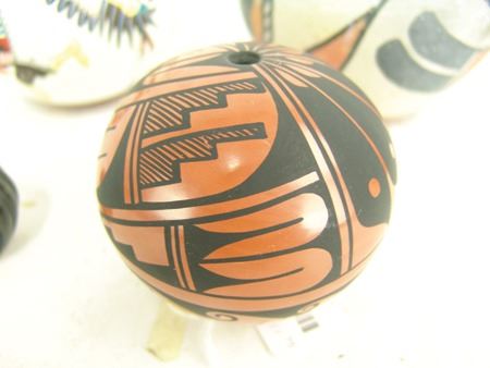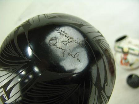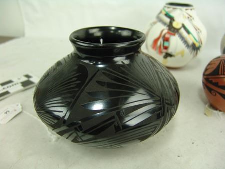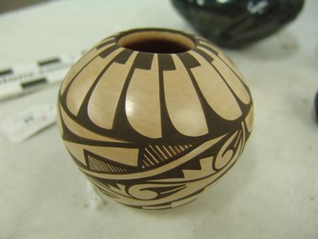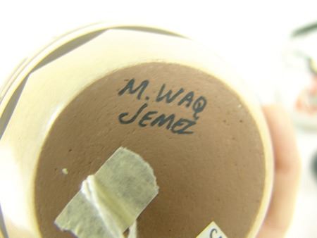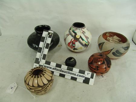 Mid/Late 1900s, Including a Zia art pottery jar by Marcellus Medina, a San Juan black blossom pot by Mercedes, a Jemez pot by Marie Waquie, an old San Domingo bird jar, a black Mata Ortiz olla by Quezada, and a Jemez black-on-red by Mary Loretto. Good to very good condition. Largest 5-1/2" x 7"