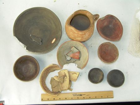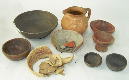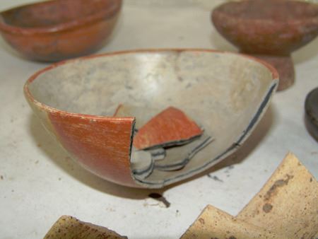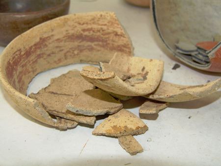 Various Ages, A grouping of mostly partial, broken, or repaired pottery pieces. Various sizes