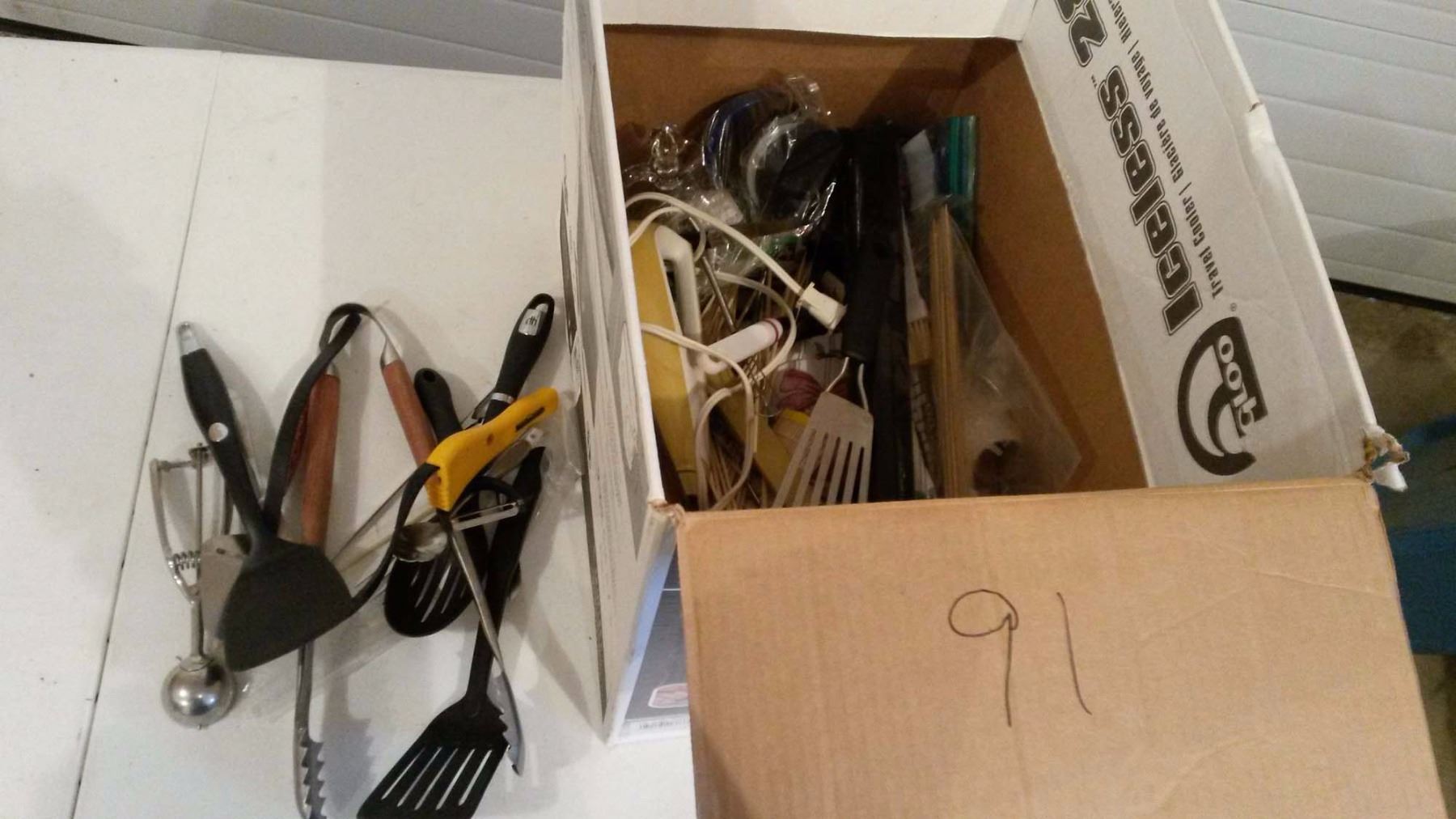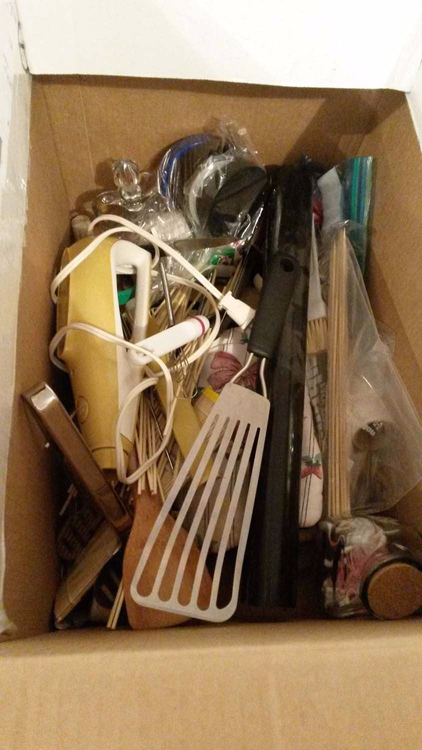 Box Of Assorted Kitchen Utensils