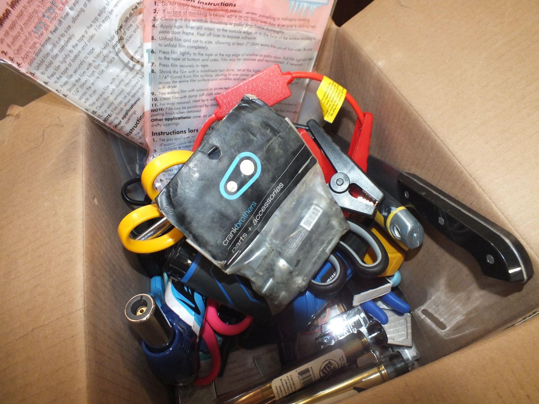you get it all for one money, electric screwdrivers no chargers, knives, window insulation kits, neck wrap, scissors...used