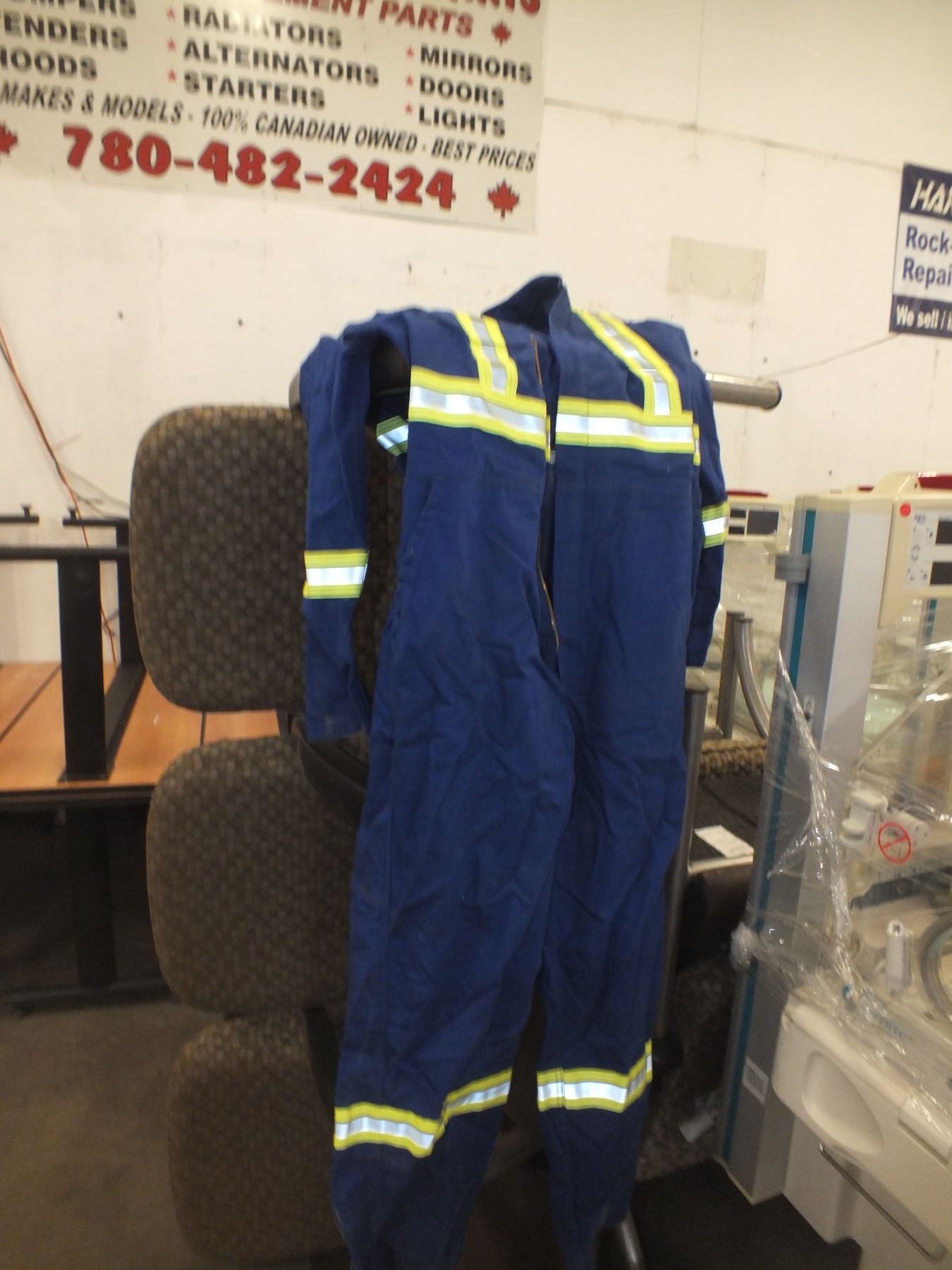 you get 5 pairs of coveralls , sizes 46x2, 50,56 58, and 1 bib, zippers are damaged...sold as is / where is...used