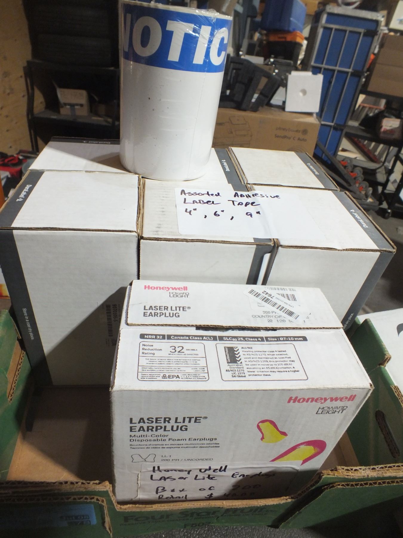 Box Of Labels & 1 box Of Ear Plugs...sold as is / where is...used