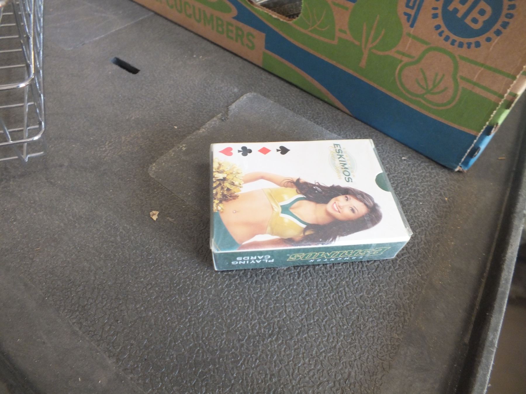 you get a garden hose holder, drill press vice, jug of glass cleaner, and Edmonton eskimos cards...new/used