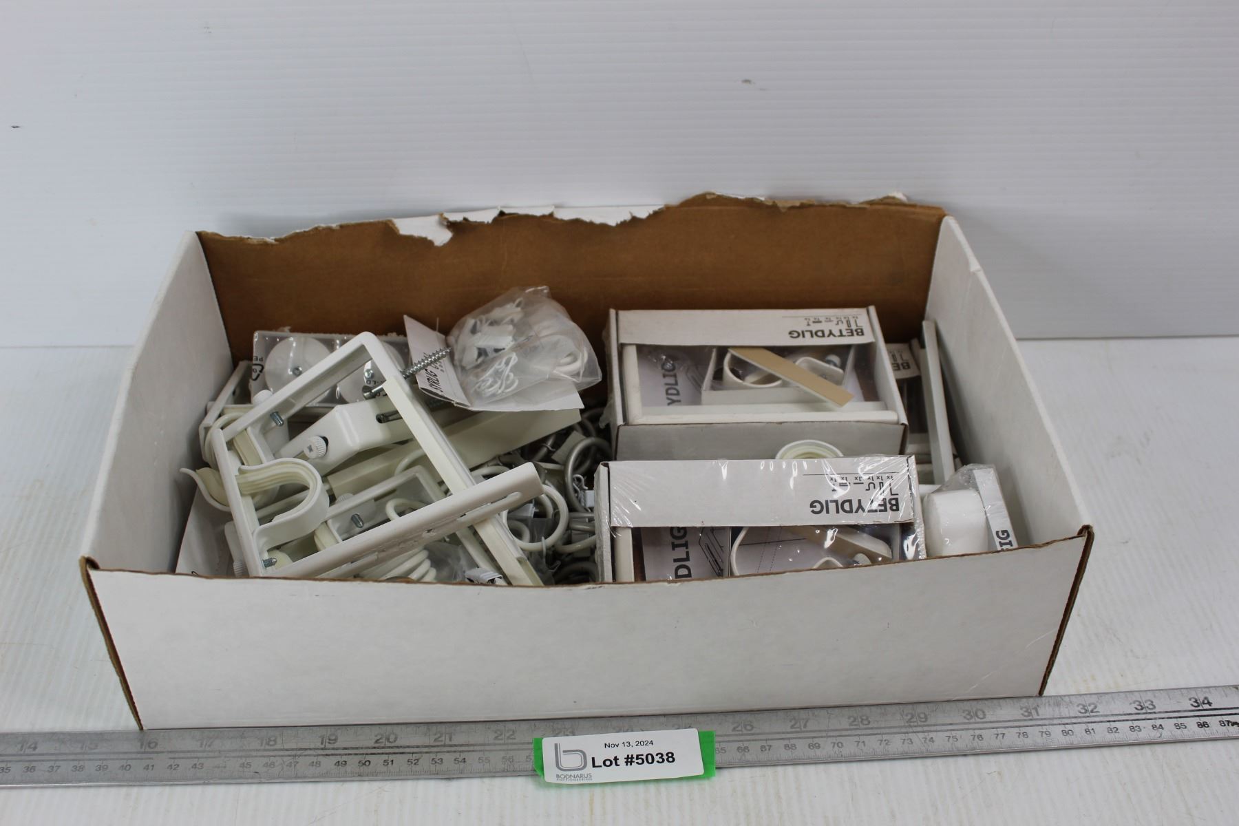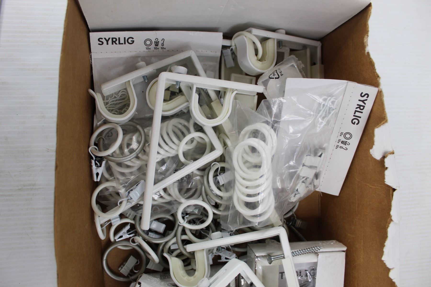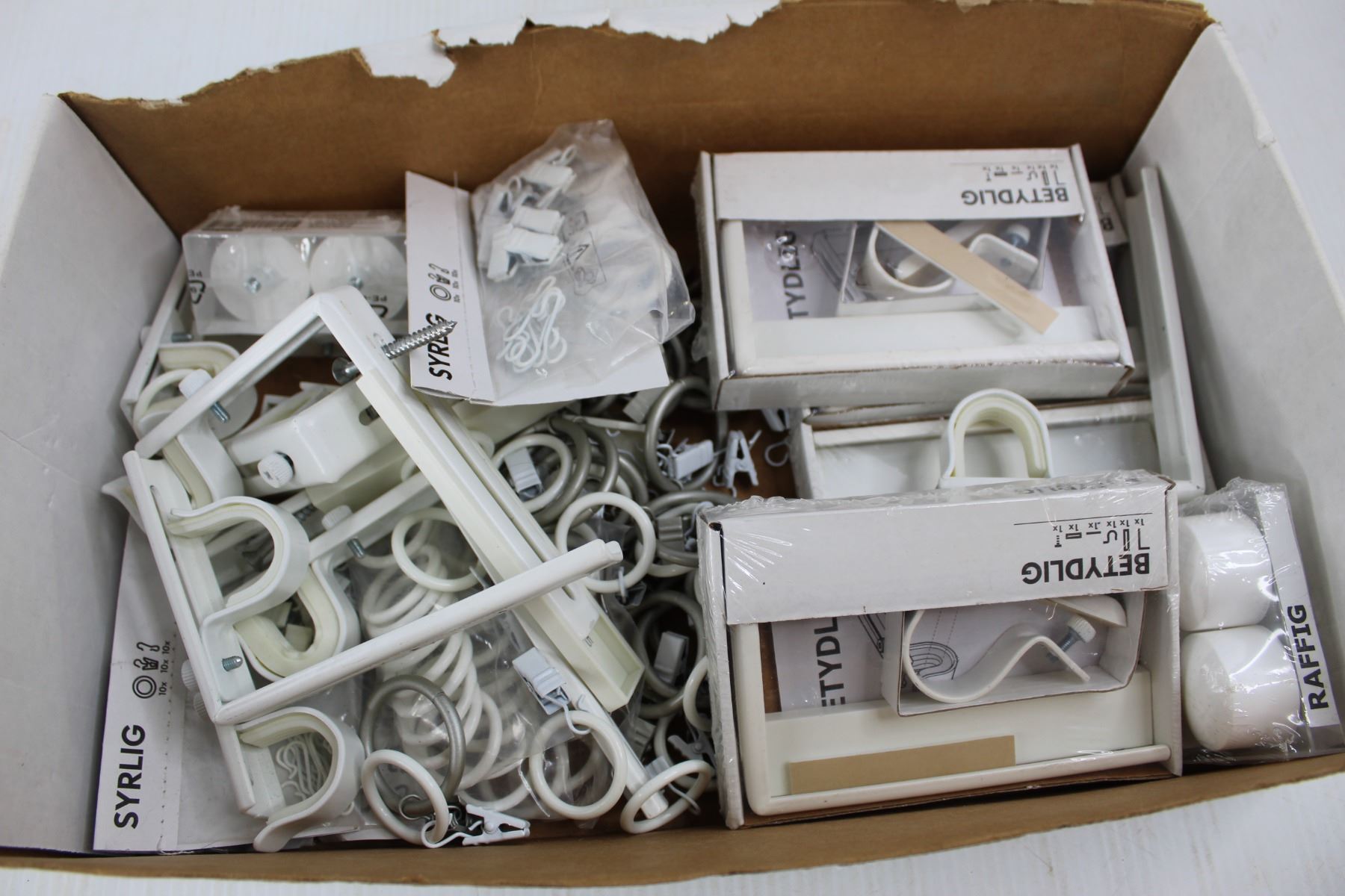 Box Of Shower Curtain Hooks, Brackets, Misc.