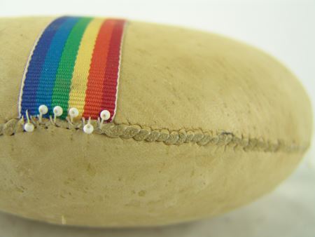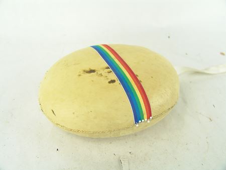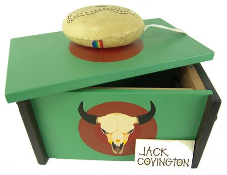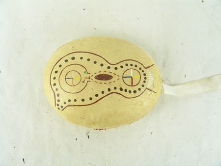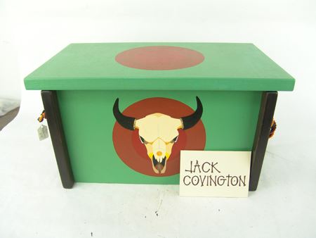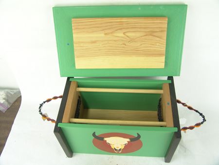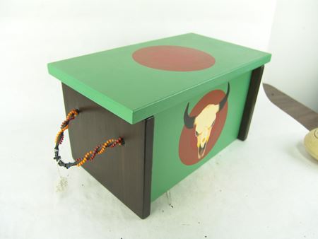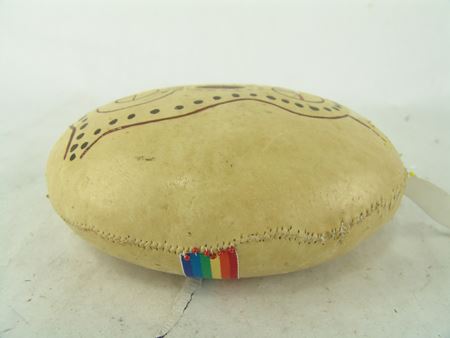 Ca. 1880s, We really don't know what this well-made decorated pine box is, or the leather covered rock is, but they are the nicest ones we've ever had! 9" x 16-1/2" x 9-1/2"