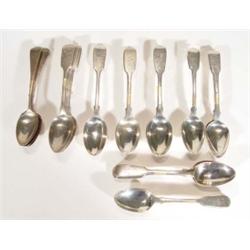 Box containing 31 silver teaspoons, mainly Georgian and Victorian