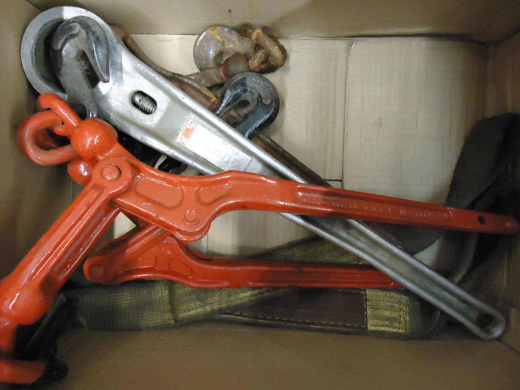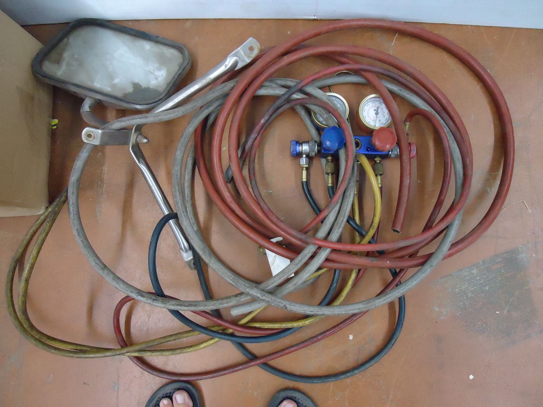 * Box containing Pullers, Hoses with Gauges, Truck side Mirror